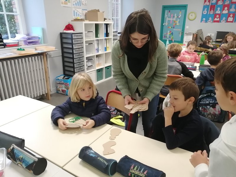 Petits et grands se sont retrouvés avec leur classe “binôme” pour réaliser des décorations de Noël.