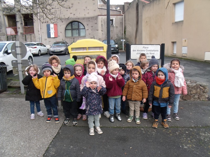 Cette semaine, nous sommes allés glisser nos cartes de BONNE ANNEE dans la boîte aux lettres de la poste.