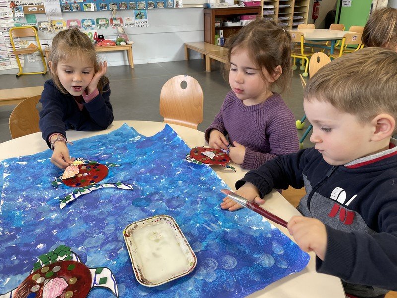 Comme un poisson dans l’eau…Par Maryline Libaud / 11 décembre 2024 Les enfants ont œuvré pour achever leur composition “Comme un poisson dans l’eau”. Décorer un ancien CD et le transformer en un poisson ; Créer un fond de l’océan pour accueillir notre poisson… Bravo les artistes ! IMG_7585 Image 15 de 35
