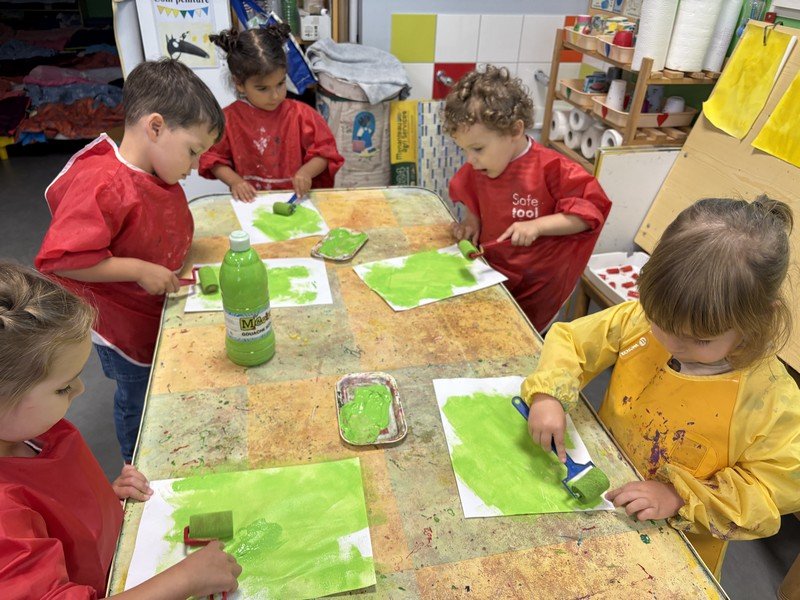 Les enfants se sont appliqués pour réaliser une couverture pour leur cahier de vie : peinture au rouleau ; peinture avec la technique du transfert ; collage pour assembler… Une composition sur le thème de l’année : les élèves de Petite Section sont les petits JARDINIERS.