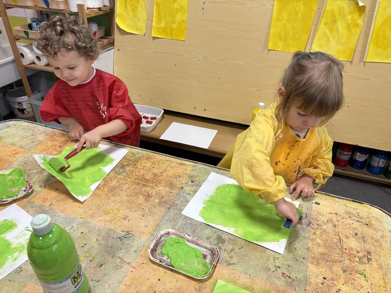 Les enfants se sont appliqués pour réaliser une couverture pour leur cahier de vie : peinture au rouleau ; peinture avec la technique du transfert ; collage pour assembler… Une composition sur le thème de l’année : les élèves de Petite Section sont les petits JARDINIERS.