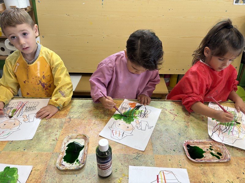 Les enfants se sont appliqués pour réaliser une couverture pour leur cahier de vie : peinture au rouleau ; peinture avec la technique du transfert ; collage pour assembler… Une composition sur le thème de l’année : les élèves de Petite Section sont les petits JARDINIERS.
