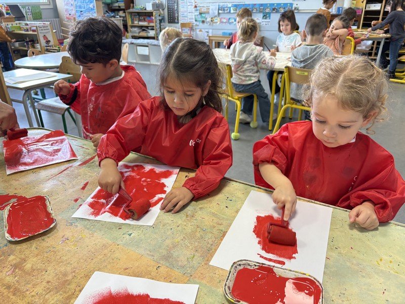 Les enfants se sont appliqués pour réaliser une couverture pour leur cahier de vie : peinture au rouleau ; peinture avec la technique du transfert ; collage pour assembler… Une composition sur le thème de l’année : les élèves de Petite Section sont les petits JARDINIERS.