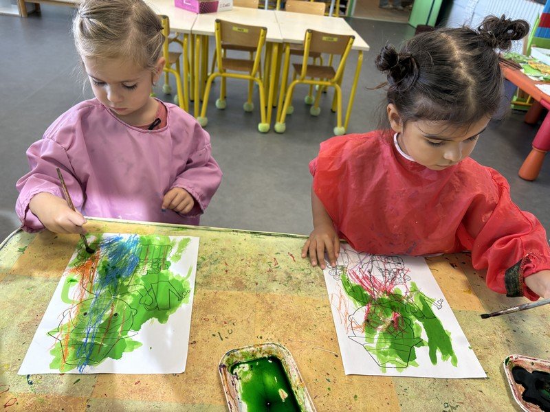 Les enfants se sont appliqués pour réaliser une couverture pour leur cahier de vie : peinture au rouleau ; peinture avec la technique du transfert ; collage pour assembler… Une composition sur le thème de l’année : les élèves de Petite Section sont les petits JARDINIERS.