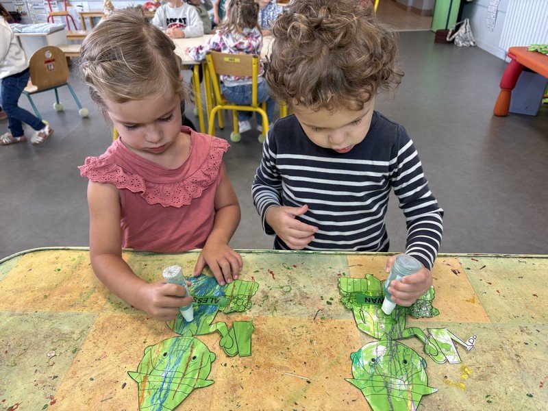Les enfants se sont appliqués pour réaliser une couverture pour leur cahier de vie : peinture au rouleau ; peinture avec la technique du transfert ; collage pour assembler… Une composition sur le thème de l’année : les élèves de Petite Section sont les petits JARDINIERS.