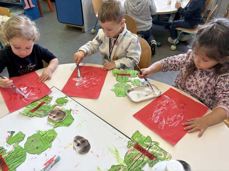 Les enfants se sont appliqués pour réaliser une couverture pour leur cahier de vie : peinture au rouleau ; peinture avec la technique du transfert ; collage pour assembler… Une composition sur le thème de l’année : les élèves de Petite Section sont les petits JARDINIERS.