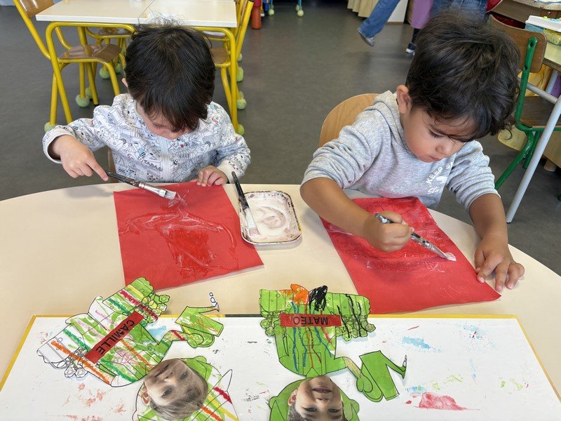 Les enfants se sont appliqués pour réaliser une couverture pour leur cahier de vie : peinture au rouleau ; peinture avec la technique du transfert ; collage pour assembler… Une composition sur le thème de l’année : les élèves de Petite Section sont les petits JARDINIERS.