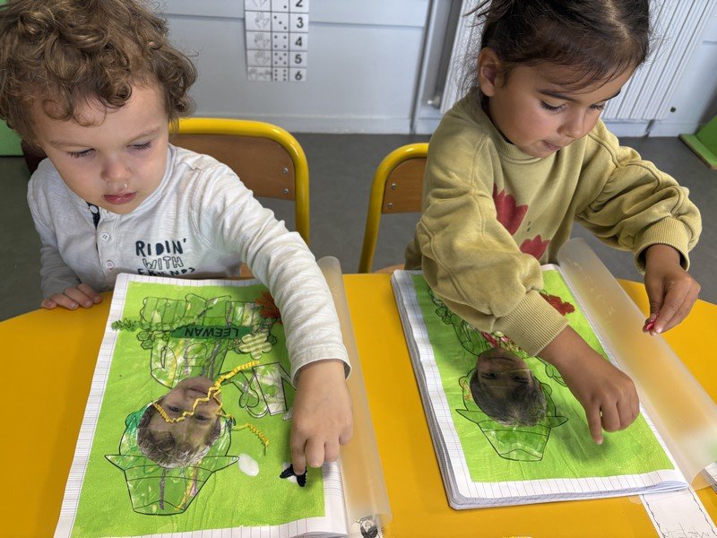 Les enfants se sont appliqués pour réaliser une couverture pour leur cahier de vie : peinture au rouleau ; peinture avec la technique du transfert ; collage pour assembler… Une composition sur le thème de l’année : les élèves de Petite Section sont les petits JARDINIERS.