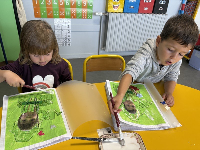 Les enfants se sont appliqués pour réaliser une couverture pour leur cahier de vie : peinture au rouleau ; peinture avec la technique du transfert ; collage pour assembler… Une composition sur le thème de l’année : les élèves de Petite Section sont les petits JARDINIERS.