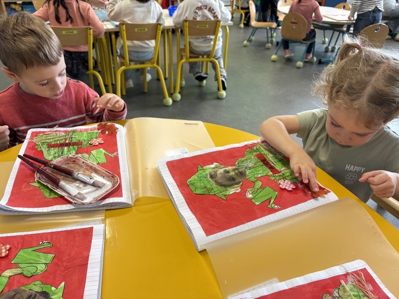 Les enfants se sont appliqués pour réaliser une couverture pour leur cahier de vie : peinture au rouleau ; peinture avec la technique du transfert ; collage pour assembler… Une composition sur le thème de l’année : les élèves de Petite Section sont les petits JARDINIERS.
