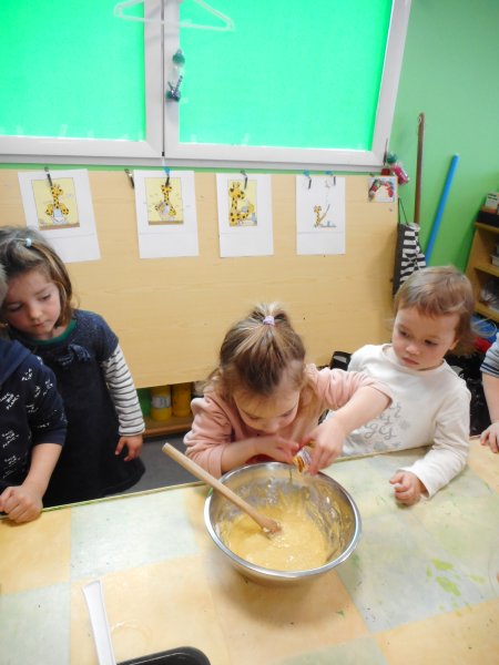 Nous avons lu l’album de Camille la girafe, qui veut faire des crêpes. Mais Camille, la girafe s’y prend maladroitement…