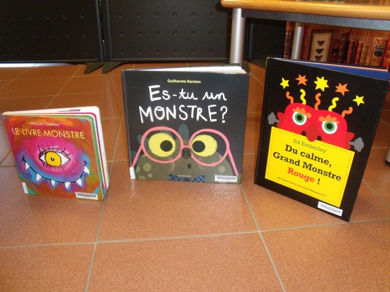 Ce matin, nous sommes passés entre les averses pour nous rendre et revenir de la bibliothèque. Valérie et Murielle nous ont raconté des histoires de MONSTRES. Puis, nous nous sommes entraînés à dessiner un monstre. Enfin, nous avons lu des albums librement, accompagnés de Laurence et Marie-Luce.