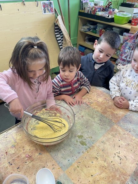 Les enfants ont réalisé un gâteau pour célébrer les anniversaires de Septembre : un Flamusse aux pommes.