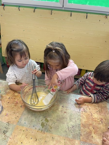 Les enfants ont réalisé un gâteau pour célébrer les anniversaires de Septembre : un Flamusse aux pommes.