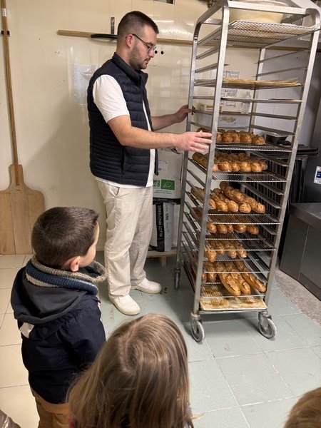Après notre promenade dans les allées du marché de Pouzauges, les enfants sont allés chez M. et Mme Gobin pour découvrir leur BOULANGERIE.