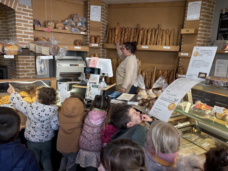 Après notre promenade dans les allées du marché de Pouzauges, les enfants sont allés chez M. et Mme Gobin pour découvrir leur BOULANGERIE.