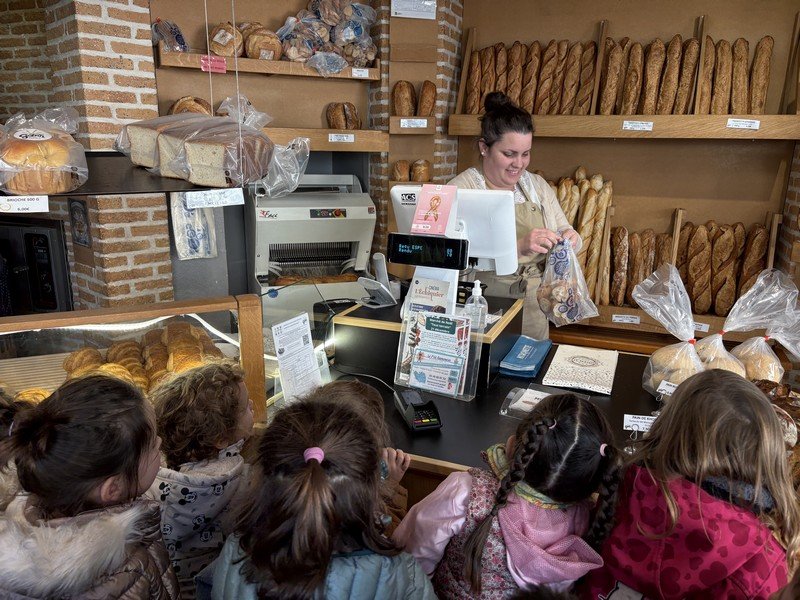 Après notre promenade dans les allées du marché de Pouzauges, les enfants sont allés chez M. et Mme Gobin pour découvrir leur BOULANGERIE.