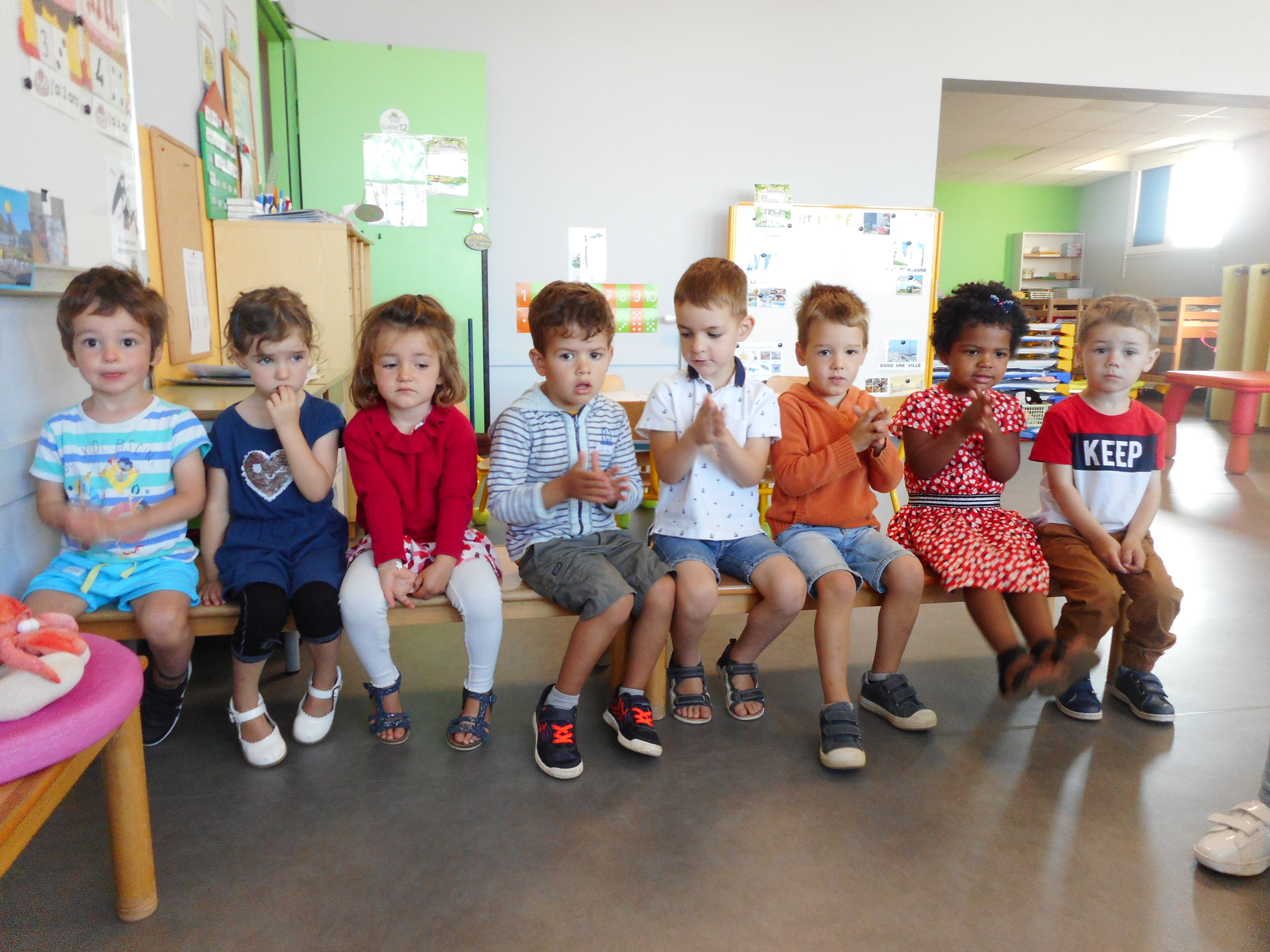 Ils explorent la classe et ils découvrent de nouvelles choses : rencontre avec les mascottes (Monsieur Lapin, Virgule la tortue et Pince-Pince le crabe) ; participation à des ateliers de peinture, de coloriage, de collage ou d’encastrements ; découverte des rituels pour se dire “Bonjour” et pour écrire la date… Les enfants ont chanté et ont frappé dans les mains…