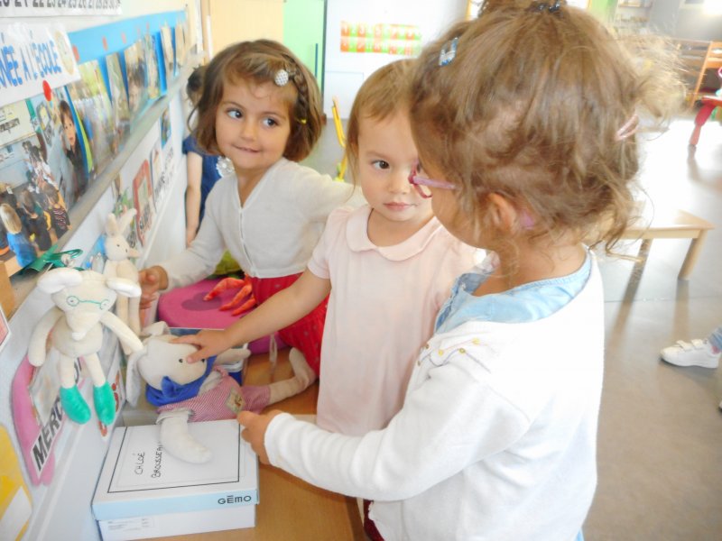 Ils explorent la classe et ils découvrent de nouvelles choses : rencontre avec les mascottes (Monsieur Lapin, Virgule la tortue et Pince-Pince le crabe) ; participation à des ateliers de peinture, de coloriage, de collage ou d’encastrements ; découverte des rituels pour se dire “Bonjour” et pour écrire la date… Les enfants ont chanté et ont frappé dans les mains…