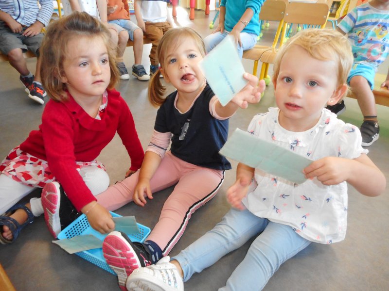 Ils explorent la classe et ils découvrent de nouvelles choses : rencontre avec les mascottes (Monsieur Lapin, Virgule la tortue et Pince-Pince le crabe) ; participation à des ateliers de peinture, de coloriage, de collage ou d’encastrements ; découverte des rituels pour se dire “Bonjour” et pour écrire la date… Les enfants ont chanté et ont frappé dans les mains…