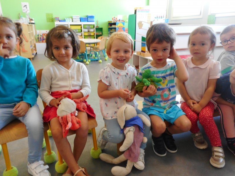 Ils explorent la classe et ils découvrent de nouvelles choses : rencontre avec les mascottes (Monsieur Lapin, Virgule la tortue et Pince-Pince le crabe) ; participation à des ateliers de peinture, de coloriage, de collage ou d’encastrements ; découverte des rituels pour se dire “Bonjour” et pour écrire la date… Les enfants ont chanté et ont frappé dans les mains…
