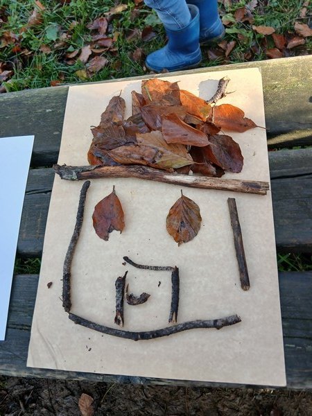 Nous avons pu remarquer les feuilles, les châtaignes et les bogues, des pommes de pin, des fougères, des glands et des bouts de bois pour réaliser des compositions en Land’Art ou compléter des tableaux pour dénombrer.