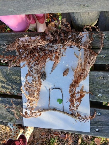 Nous avons pu remarquer les feuilles, les châtaignes et les bogues, des pommes de pin, des fougères, des glands et des bouts de bois pour réaliser des compositions en Land’Art ou compléter des tableaux pour dénombrer.