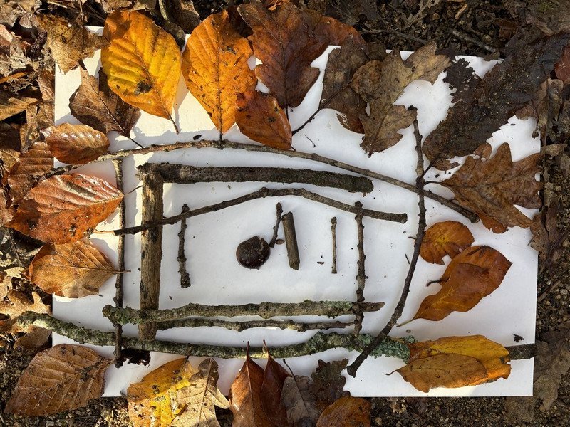 Nous avons pu remarquer les feuilles, les châtaignes et les bogues, des pommes de pin, des fougères, des glands et des bouts de bois pour réaliser des compositions en Land’Art ou compléter des tableaux pour dénombrer.
