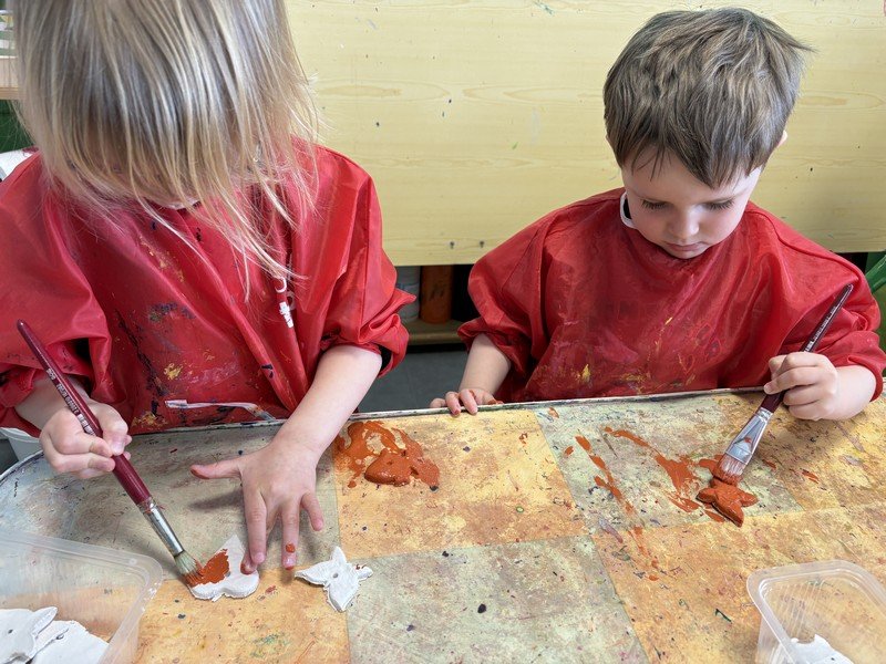 Pour célébrer les fêtes de Pâques, les enfants ont composé une suspension décorative, réalisée en modelant de la pâte Plastiroc avec l’aide de pochoirs. Les enfants se sont entraînés pour enfiler le fil et attacher les éléments. Joyeuses fêtes de Pâques
