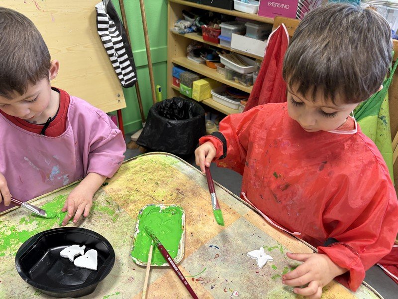 Pour célébrer les fêtes de Pâques, les enfants ont composé une suspension décorative, réalisée en modelant de la pâte Plastiroc avec l’aide de pochoirs. Les enfants se sont entraînés pour enfiler le fil et attacher les éléments. Joyeuses fêtes de Pâques