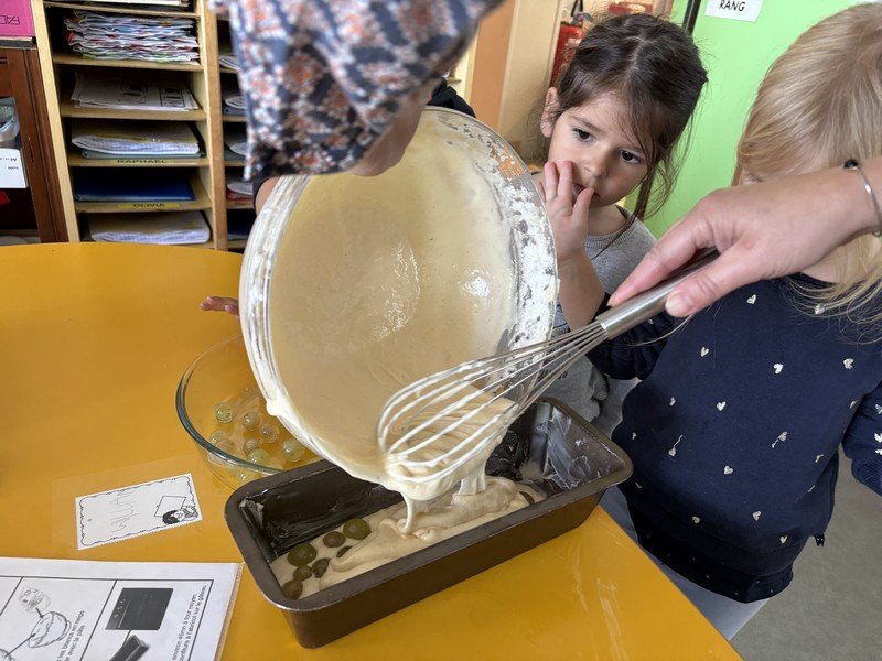 Un cake au raisin pour célébrer les anniversairesPar Maryline Libaud / 3 octobre 2025 Lundi matin, les enfants de la classe “apprentis pâtissiers” ont réalisé la recette d’un cake au raisin, fruit de l’automne. IMG_0580 Image 9 de 21