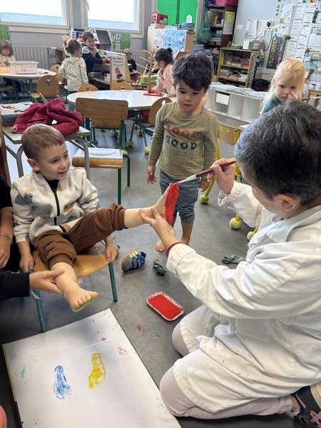 Une décoration pour le couloir des PSPar Maryline Libaud / 26 septembre 2025 Les enfants ont réalisé des empreintes de pieds… ça “chatouillait” !!! Ils ont ensuite peint un nouveau personnage JARDINIER pour décorer le couloir de leur porte-manteau. IMG_0303 Image 5 de 14