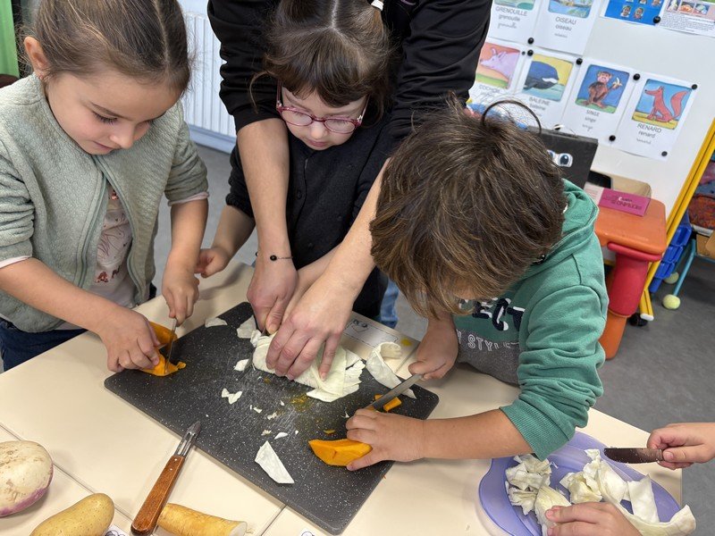 Les enfants ont préparé un délicieux potage avec les légumes du marché :