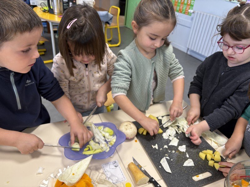 Les enfants ont préparé un délicieux potage avec les légumes du marché :