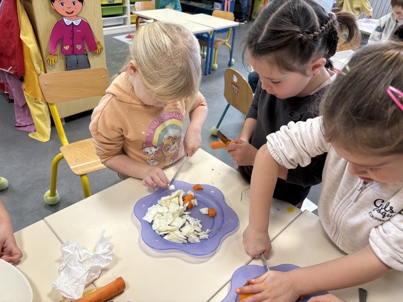 Les enfants ont préparé un délicieux potage avec les légumes du marché :