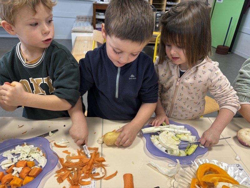 Les enfants ont préparé un délicieux potage avec les légumes du marché :