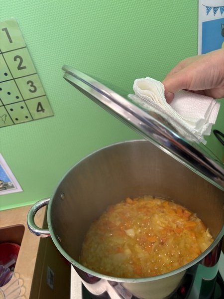 Les enfants ont préparé un délicieux potage avec les légumes du marché :